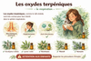 Les oxydes terpéniques, comme le 1,8-cinéole (eucalyptol), sont très connus pour leur intérêt dans la sphère respiratoire. On y retrouve également par exemple le bisaboloxyde, le daucol, l'ascaridole, le linaloloxyde.