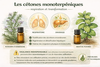 Les monoterpènes sont des molécules très fréquentes dans les huiles essentielles. On y retrouve par exemple le limonène, l’alpha-pinène, le gamma-terpinène, le myrcène, le paracymène, le phéllandrène.