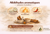 Les aldéhydes aromatiques, comme le cinnamaldéhyde (cinnamal), sont des molécules très puissantes, surtout connues pour leur activité antimicrobienne (données majoritairement in vitro) et certaines actions anti‑inflammatoires. On y retrouve également par exemple le cuminaldéhyde.